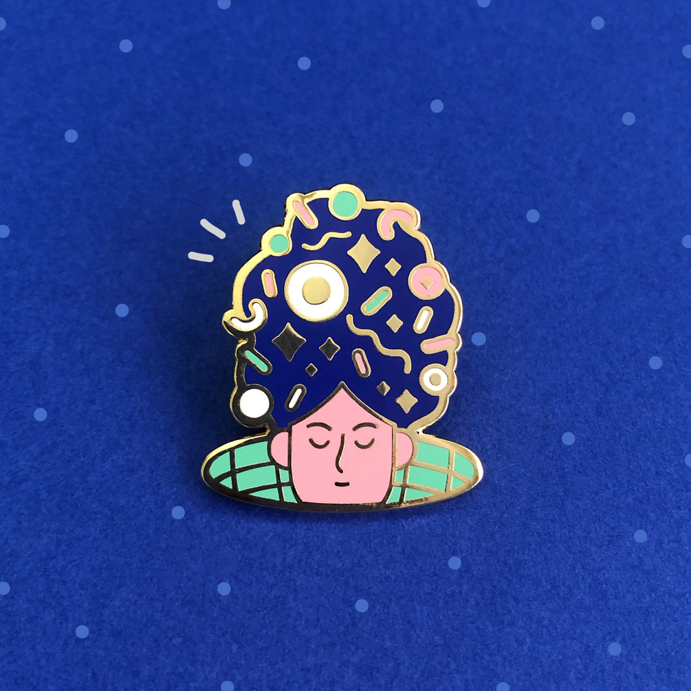 Hard enamel pin (32mm x 27mm) in gold plating, with a rubber clutch back.